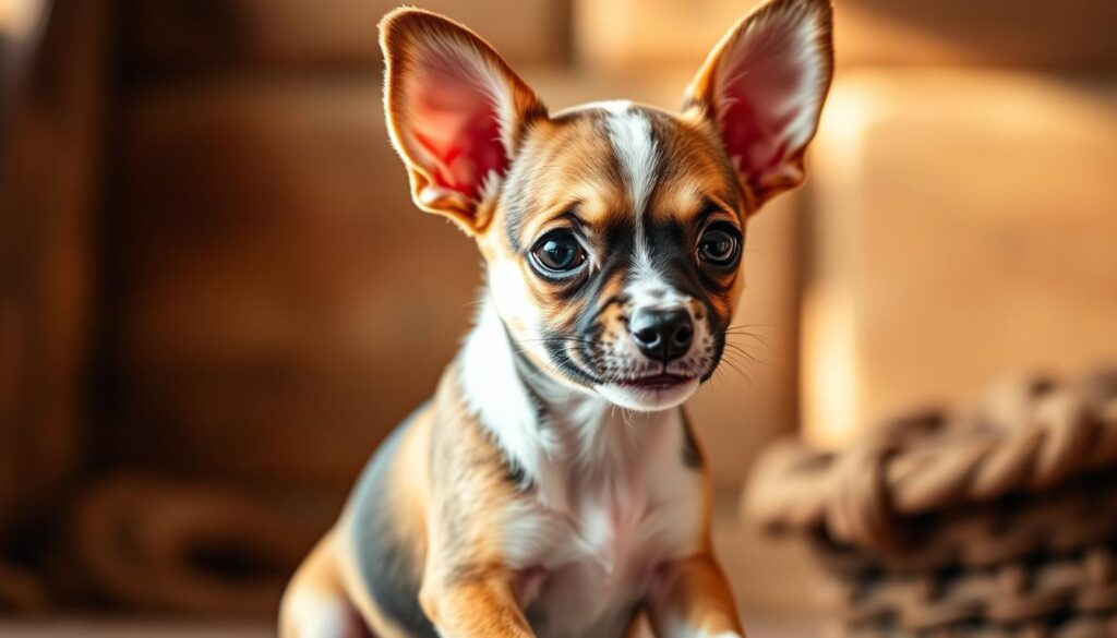 This mix of working heritage and ancient lineage brings a special energy and love. The Rat Terrier’s farm instincts and the Chihuahua’s loyalty create a unique mix. They are perfect for active families looking for small dogs with big hearts.